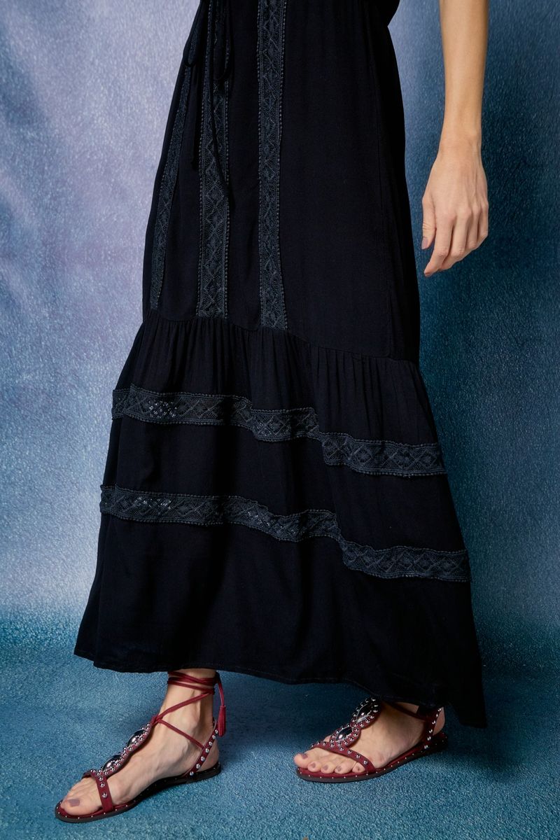 Confeccionado em tecido leve, o modelo conta com alcinhas finas reguláveis, botões frontais que reforçam o charme romântico e recortes com renda que trazem sutileza e elegância. O detalhe de amarração na cintura garante ajuste ideal, enquanto a saia fluida com babado confere movimento e frescor ao visual. Perfeito para compor produções delicadas e sofisticadas.