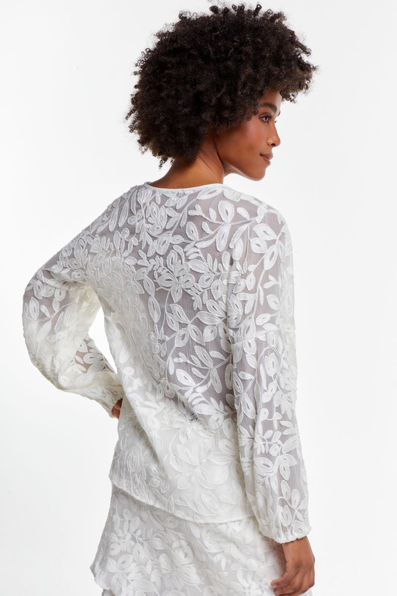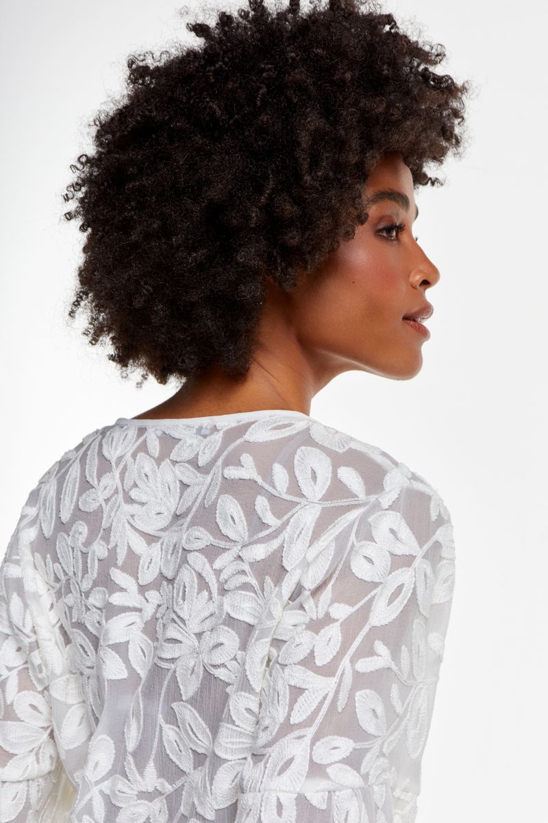 A Bata Renda Mint revela uma elegância fresca e atemporal, combinando a leveza do tecido translúcido com o charme dos bordados florais em relevo.