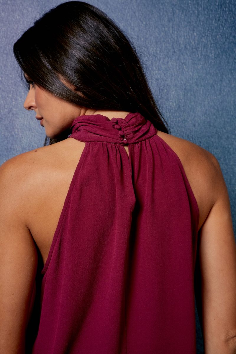 Confeccionada em seda leve e fluida, a Blusa Cavada Seda apresenta modelagem reta e caimento solto, garantindo movimento e toque sedoso sobre a pele. O decote halter drapeado, com fechamento posterior por delicados botões, valoriza os ombros e o colo, acrescentando um ar refinado à peça. Seu design clean permite combinações com diferentes estilos de parte de baixo, desde calças de alfaiataria até saias ou jeans, adaptando-se a ocasiões casuais e sofisticadas com facilidade.