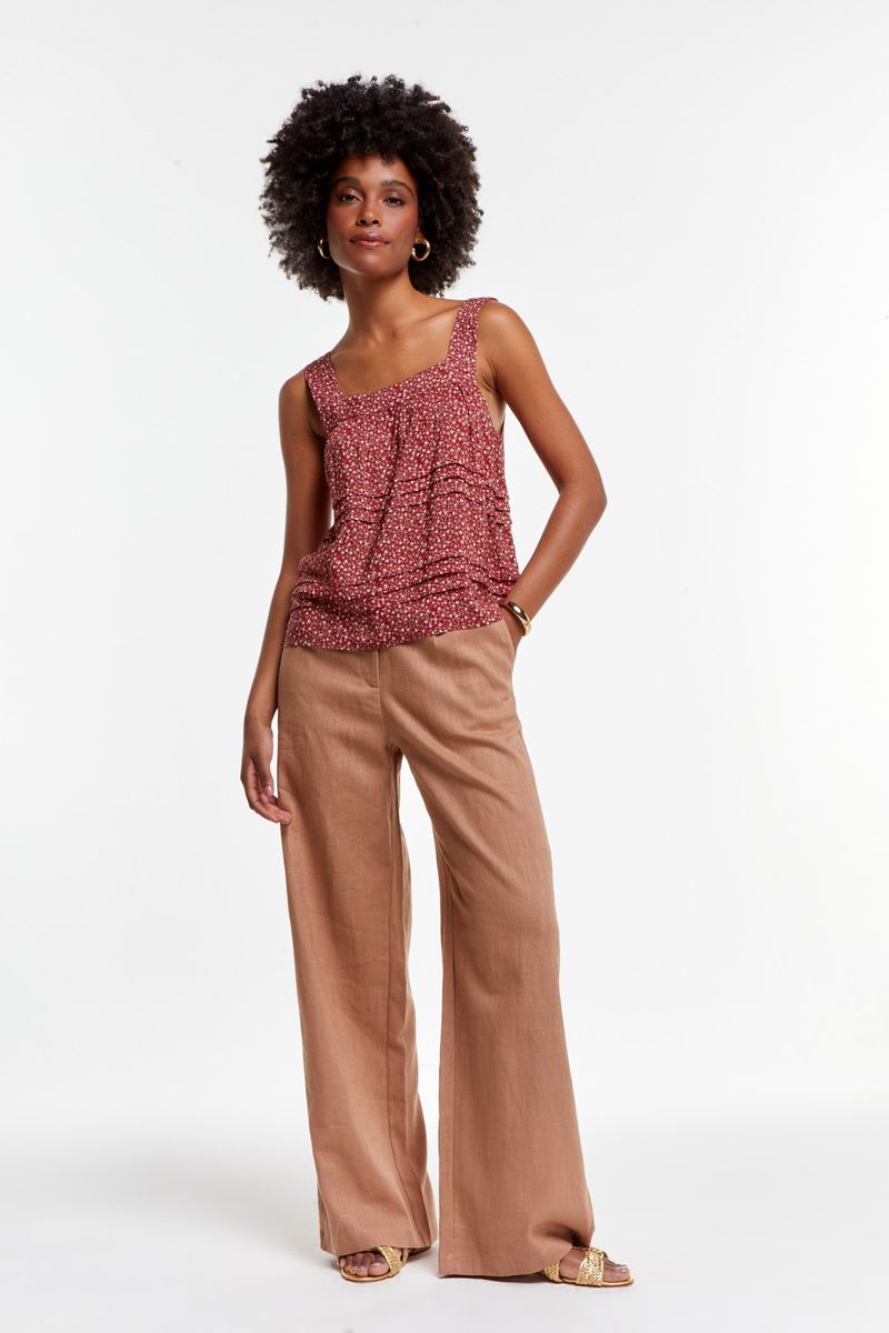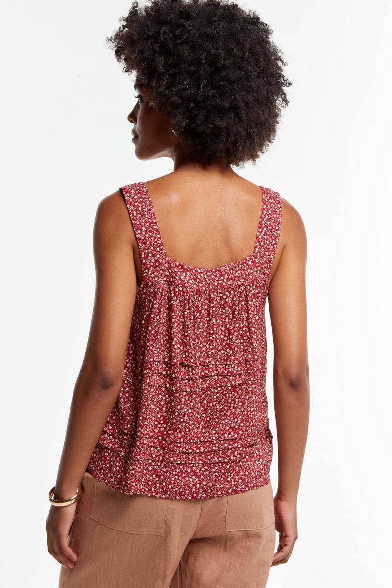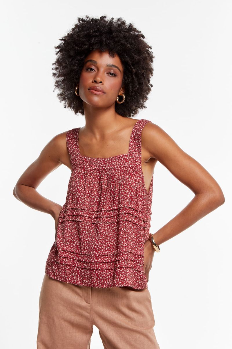 Seu caimento confortável e as alças largas criam uma peça versátil, perfeita para compor looks casuais ou mais arrumados.O design conta com camadas sutis abaixo do busto e na cintura, criando um efeito visual delicado e proporcionando movimento à peça. Ideal para dias quentes, ela combina frescor, estilo e um toque retrô irresistível.