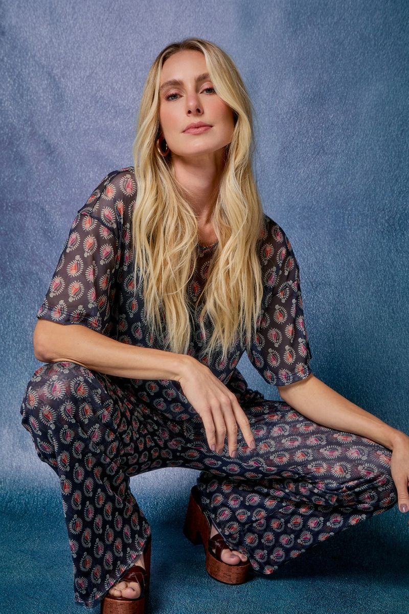 Confeccionada em tule fluido com estampa exclusiva, apresenta modelagem reta com caimento solto, proporcionando conforto e elegância em igual medida. Transparente na medida certa, acompanha forro interno que garante praticidade e segurança no uso. Uma peça perfeita para compor produções contemporâneas, seja em conjunto com a blusa coordenada ou em looks independentes.