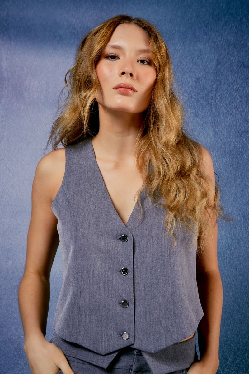 Confeccionado em alfaiataria de toque macio, o Colete York apresenta corte estruturado que valoriza a silhueta com elegância e praticidade. Seu design minimalista é destacado pelo decote em V profundo e pelo fechamento frontal por botões, elementos que adicionam sofisticação ao visual. A modelagem ajustada e o comprimento levemente alongado tornam a peça perfeita para composições modernas, podendo ser usada sozinha ou sobre camisas e blusas em produções casuais ou sofisticadas.