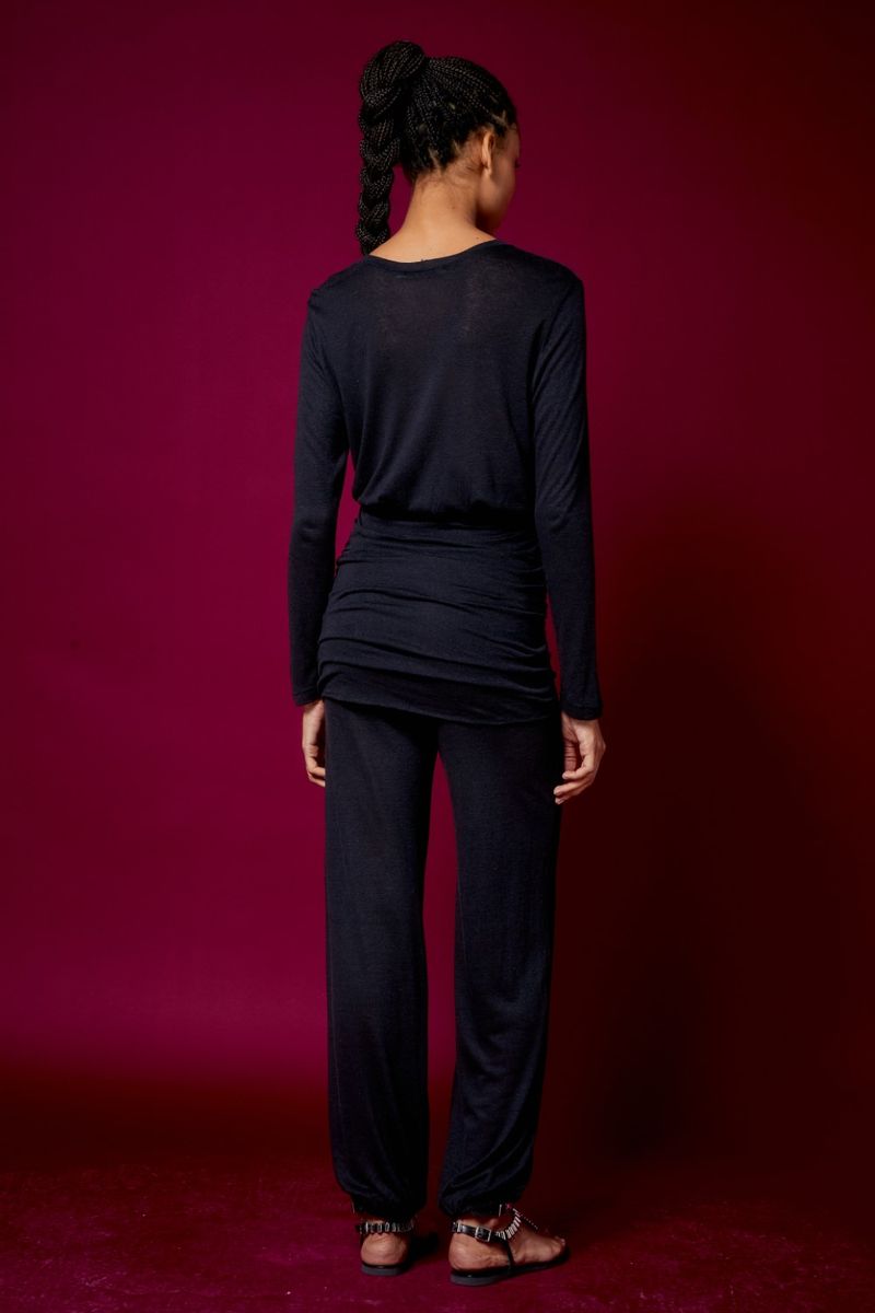 A blusa de mangas longas apresenta um caimento fluido e elegante, proporcionando leveza e conforto para os dias mais frescos. Seu design minimalista realça a sofisticação da peça, tornando-a perfeita para diversas ocasiões. Já a calça reta, com um corte impecável e caimento estruturado, valoriza a silhueta de maneira sutil e sofisticada, garantindo um visual equilibrado e moderno.