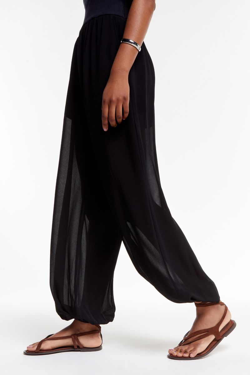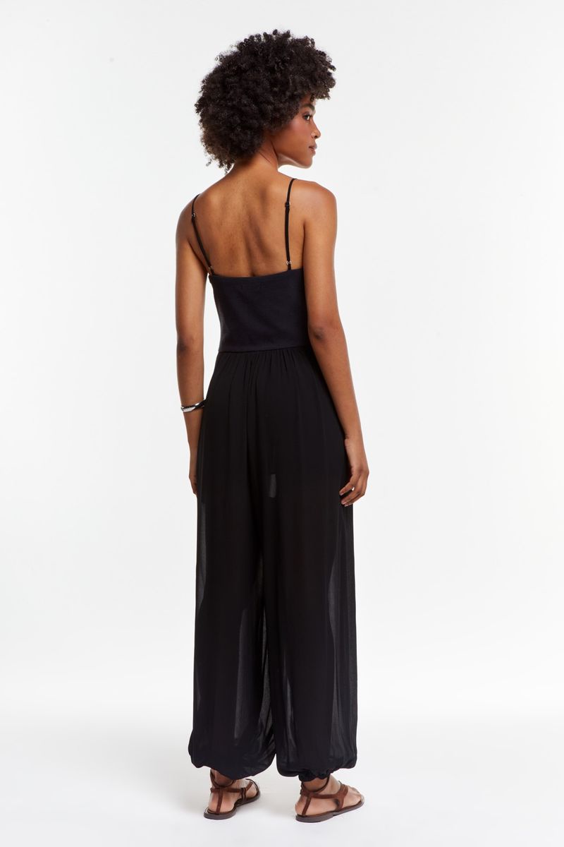 O top estruturado valoriza o tronco com caimento impecável, enquanto as alcinhas finas trazem delicadeza ao visual. A calça com efeito balonê adiciona volume suave e transparência estratégica, resultando em um look marcante, confortável e versátil para diversas ocasiões.Uma peça que se destaca pela silhueta leve e contemporânea.