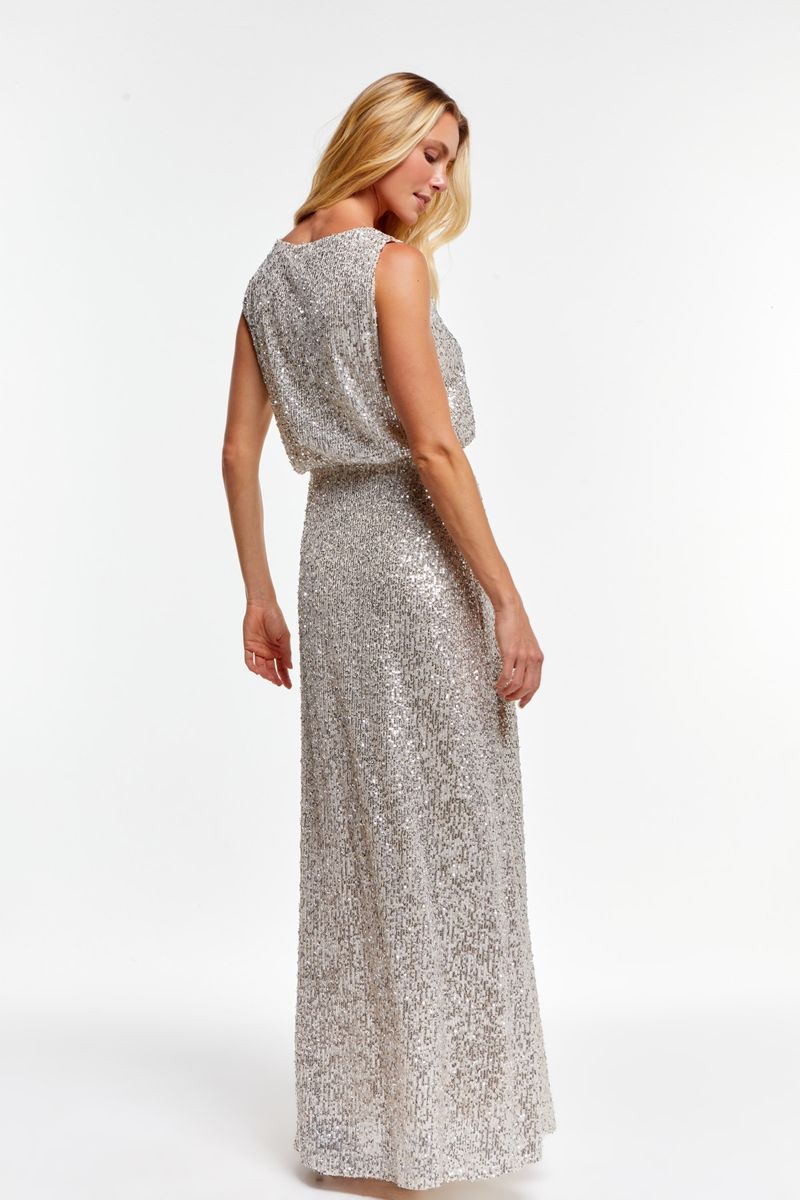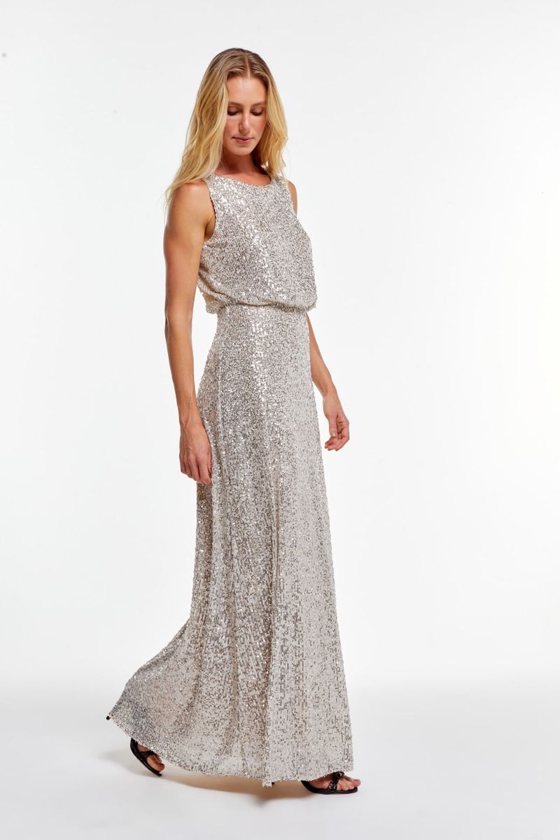 Com paetês bordados por toda a peça, ele cria um efeito cintilante que acompanha o movimento do corpo, garantindo presença marcante em eventos especiais. Sua modelagem fluida equilibra conforto e glamour, trazendo elegância em cada detalhe.